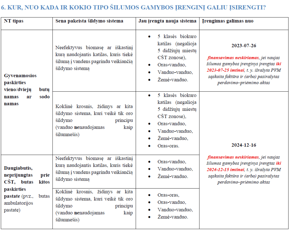 Paraišką galima teikti TIK jau įsirengus naują šildymo įrenginį.