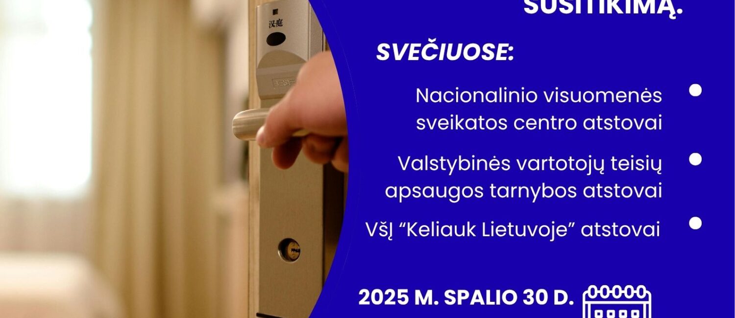 • Sužinoti apie naujausius teisės aktų pakeitimus, taikomus turizmo ir apgyvendinimo veiklai;