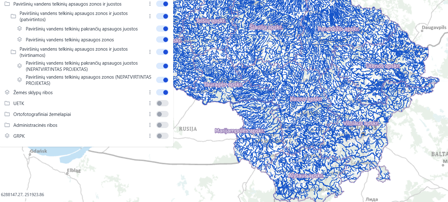 Aplinkos apsaugos agentūra (toliau – Agentūra), įgyvendindama Lietuvos Respublikos specialiųjų žemės naudojimo sąlygų įstatymo (toliau – SŽNS įstatymas) 11 straipsnio 1 dalies  ir 141 straipsnio 1 dalies nuostatas, informuoja apie Agentūros direktoriaus 2025-12-23 įsakymu Nr. AV-251 patvirtintą Paviršinių vandens telkinių apsaugos zonų ir paviršinių vandens telkinių pakrantės apsaugos juostų žemėlapį (toliau – Pakrančių teritorijų žemėlapis). Taip pat informuojame, kad teritorijos, kurioms taikomos paviršinių vandens telkinių apsaugos zonų ir pakrantės apsaugos juostų specialiosios žemės naudojimo sąlygos, įregistruotos Nekilnojamo turto registre.