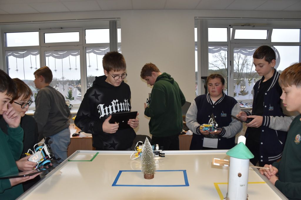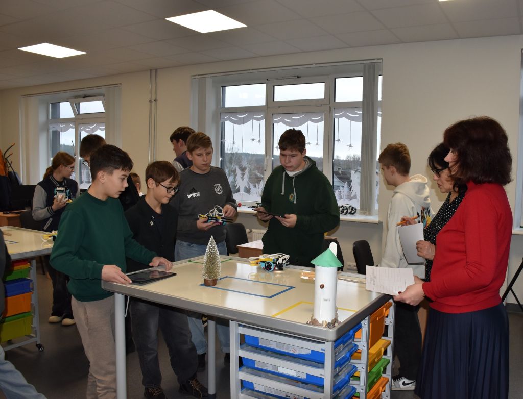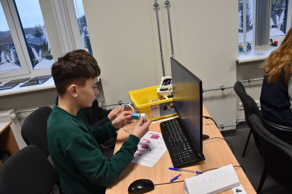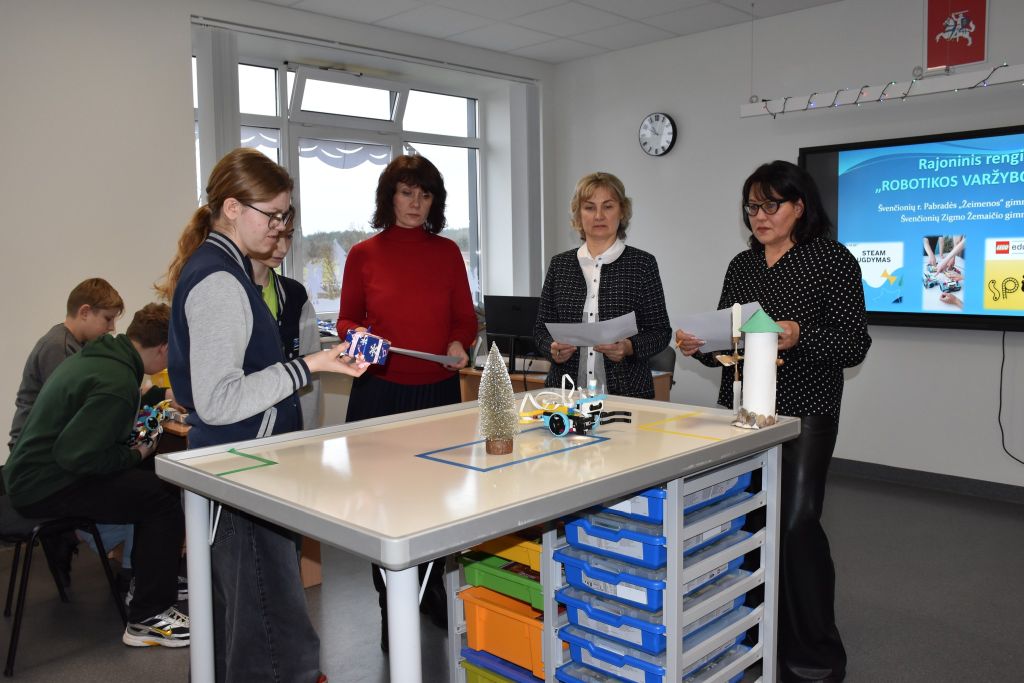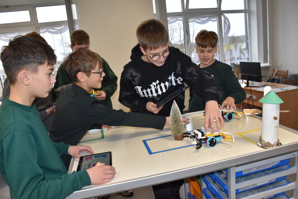 Mokiniai, dirbdami poromis, kibo į kūrybinį darbą – naudodami LEGO Spike Prime rinkinius jie konstravo robotus ir juos programavo taip, kad šie sėkmingai atliktų tris užduotis. Šventinės tematikos varžybose robotai turėjo pasiekti eglutę, apvažiuoti trasą aplink ją ir pastumti dovaną iki pažymėtos vietos. Tai pareikalavo ne tik techninių žinių, bet ir loginio mąstymo, kantrybės bei komandinio darbo.